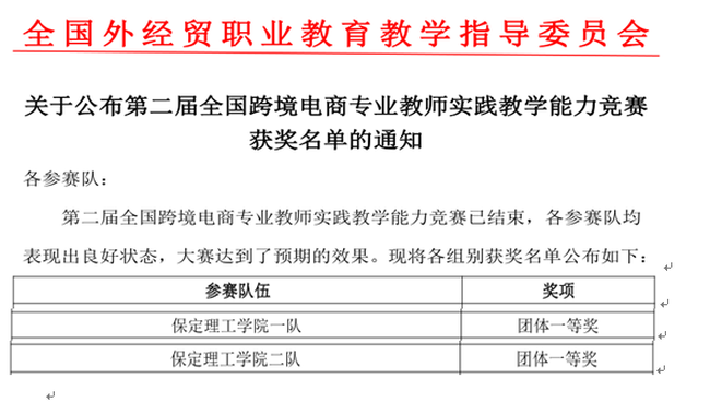 文章导读:2020年11月8日,由全国外经贸职业教育教学指导委员会举办的第二届全国跨境电商专业教师实践教学能力竞赛于2020年11月8号晚上八点半圆满结束,我院两支教师参赛队伍双双斩获团体一等奖!本次大赛自11月6日开始,历时三天,......