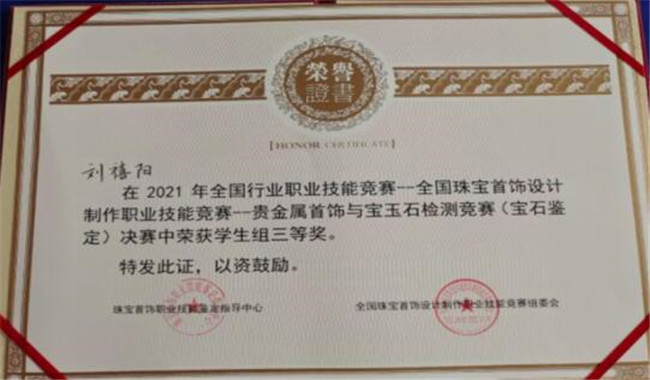 资源与工程技术学院宝石专业学生在全国技能鉴定大赛中获三等奖