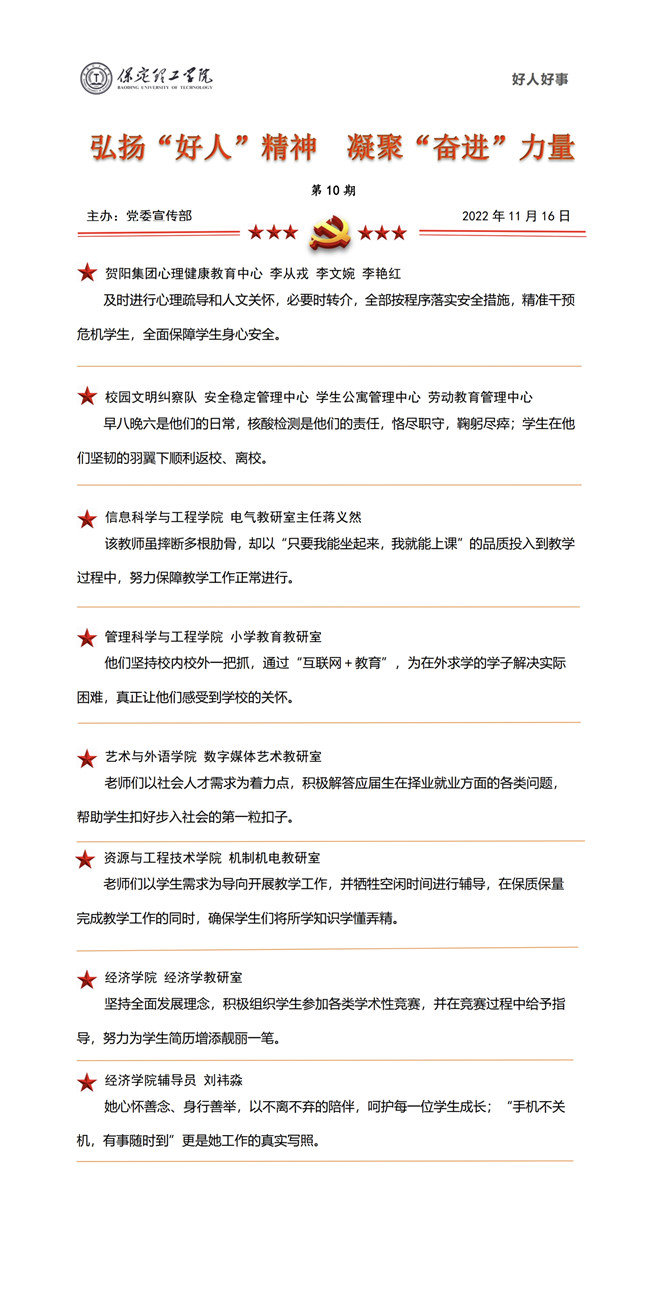文章导读:为深入学习贯彻党的二十大精神,认真落实中央、省部委以及教育主管部门部署要求。12月4日下午,中共米乐mile官方网站委员会组织召开学习贯彻党的二十大精神线上宣讲会,党委书记王景明以《全面学习党的二十大精神推动保定理......