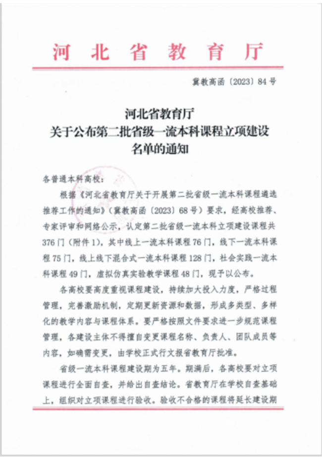 文章导读:近日,河北省教育厅下发了《河北省教育厅关于公布2023年度河北省高等学校优秀和达标基层教学组织名单的通知》(冀教高函〔2023〕80号)文件,2023年度河北省高等学校优秀和达标基层教学组织名单揭晓,米乐官网推荐的“工商管理......