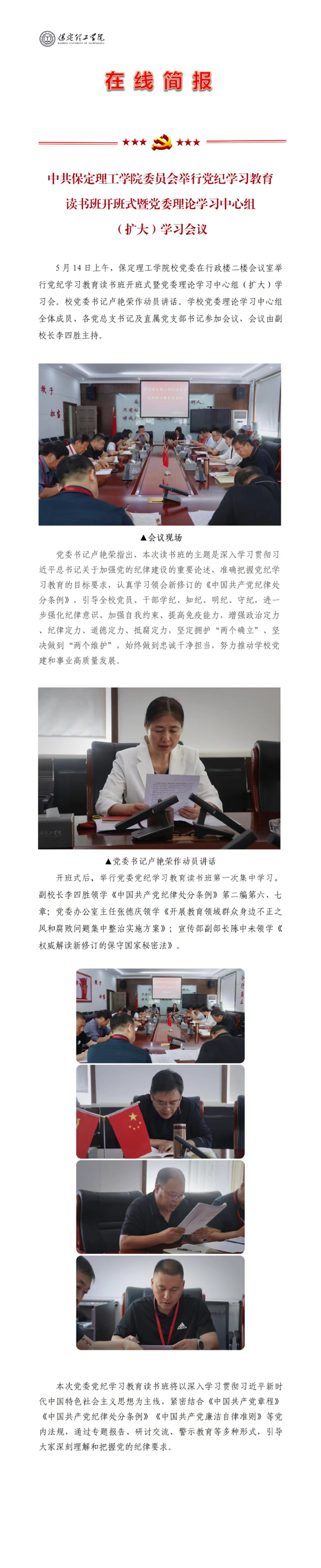 中共米乐mile官方网站委员会举行党纪学习教育读书班开班式暨党委理论学习中心组
