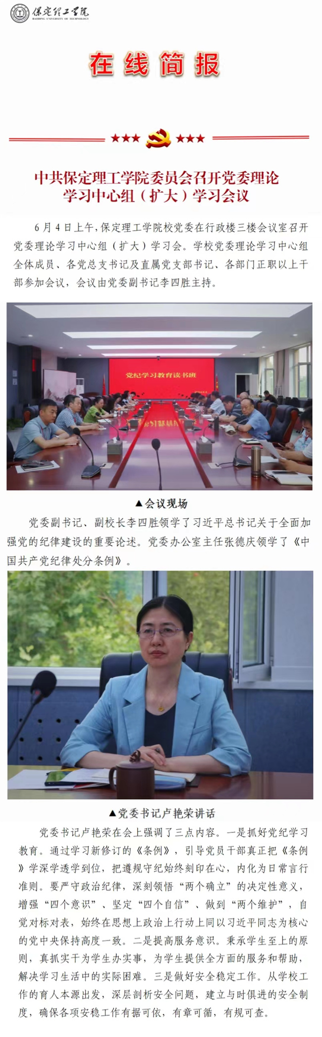 文章导读:为提高广大党员干部的政治站位,深刻认识加强党的纪律建设的重大意义。2024年6月4日,学校邀请原河北大学纪委副书记陈永学教授,以“严守纪律规矩坚守底线红线做合格党员”为主题,为米乐mile官方网站作辅导报告。学校党委书......