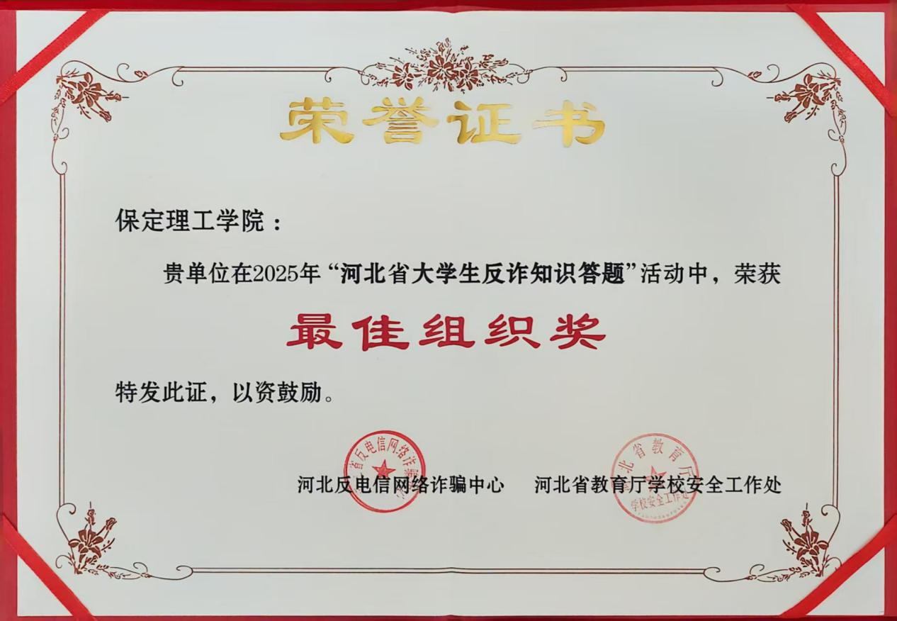 米乐官网在2025年“河北省大学生反诈知识答题”活动中荣获“最佳组织奖”