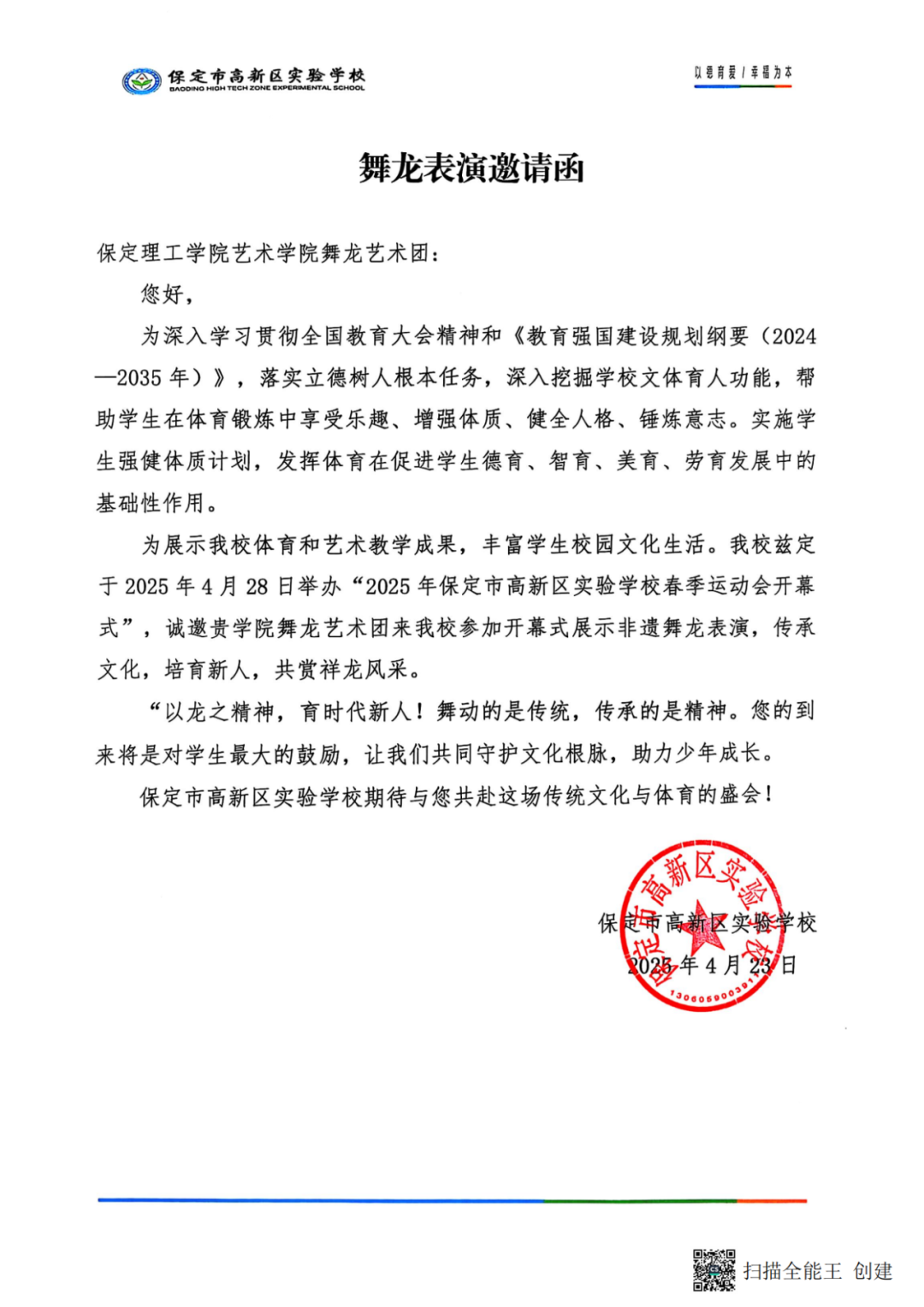 为弘扬中华优秀传统文化,深化校际艺术交流,米乐mile官方网站艺术学院师生走进保定市高新区实验学校,开展精彩绝伦的舞龙活动。锣鼓铿锵,彩龙翻腾,艺术学院学子们以灵动