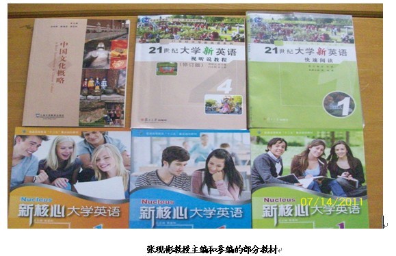 主编出版《中国文化概论》(上海外语教育出版社)1部;副主编普通高等教育“十一五”国家级规划教材《21世纪大学新英语视听说教程4》(复旦大学出版社)1部;主编出版普通高等教育“十二五”重点规划教材《新核心大学英语泛读教程1》(上海交通大学出版社)1部;副主编出版普通高等教育“十二五”重点规划教材《新核心大学英语读写教程2》(上海交通大学出版社)1部。