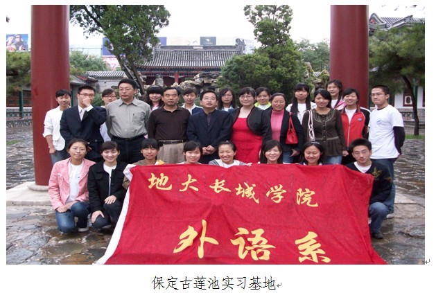 中国地质大学长城学院外语系英语专业设立于2006年7月。目前,英语专业在校本科生675名。 经过六年的建设和发展,英语专业凭借自己的优势于2011年5月被定为学院的重点建设专业。英语专业在专业定位、课程设置、师资建设、教学条件建设和人才培养方面均取得了可喜成绩。在科学合理的教育体系下培养的学生德才兼备、品学兼优,毕业生累计考研率达到7.4%,并有多名同学赴海外留学继续深造,就业学生在各自工作岗位上表现突出,受到用人单位的好评。 一、专业定位